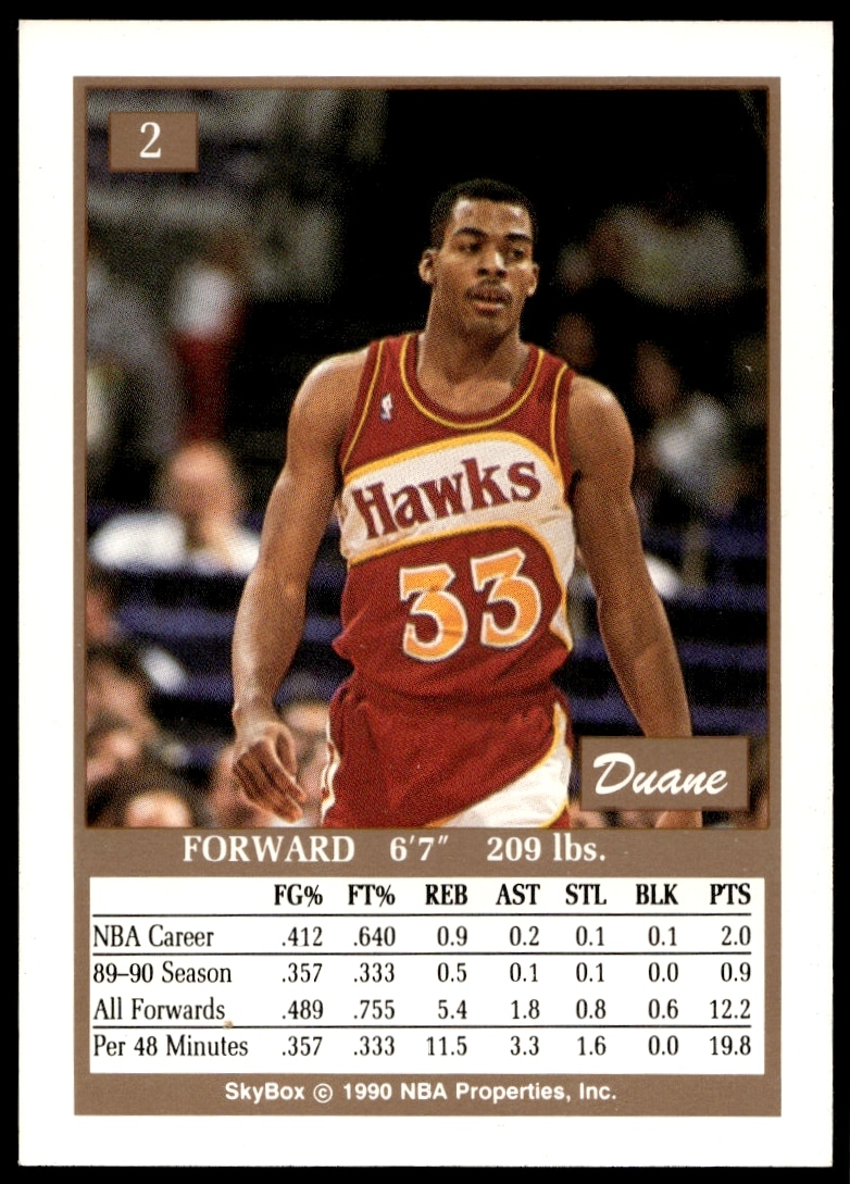 This Basketball card, from 1990-91 is part of the SkyBox card set. Duane Ferrell is featured and has a card number of 2.