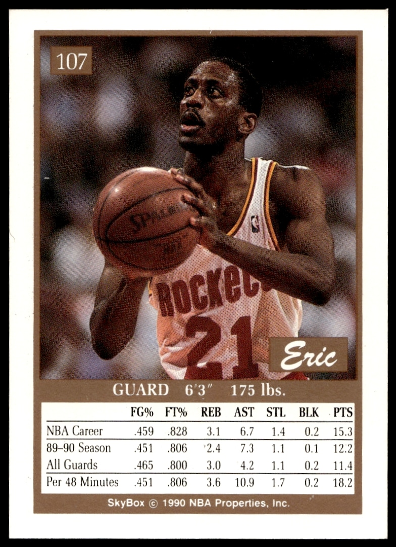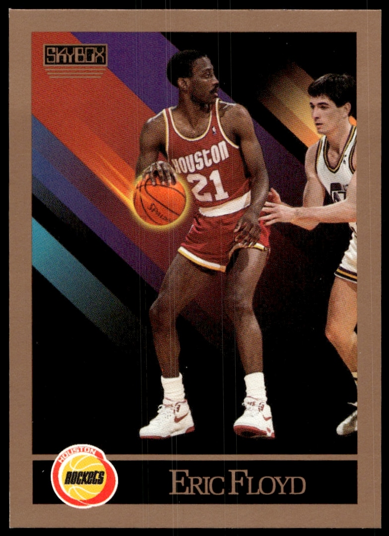 This Basketball card, from 1990-91 is part of the SkyBox card set. Eric Floyd is featured and has a card number of 107.