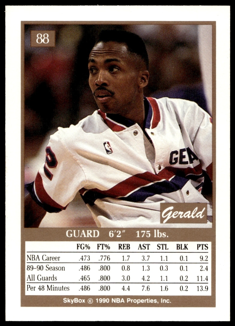 This Basketball card, from 1990-91 is part of the SkyBox card set. Gerald Henderson is featured and has a card number of 88.
