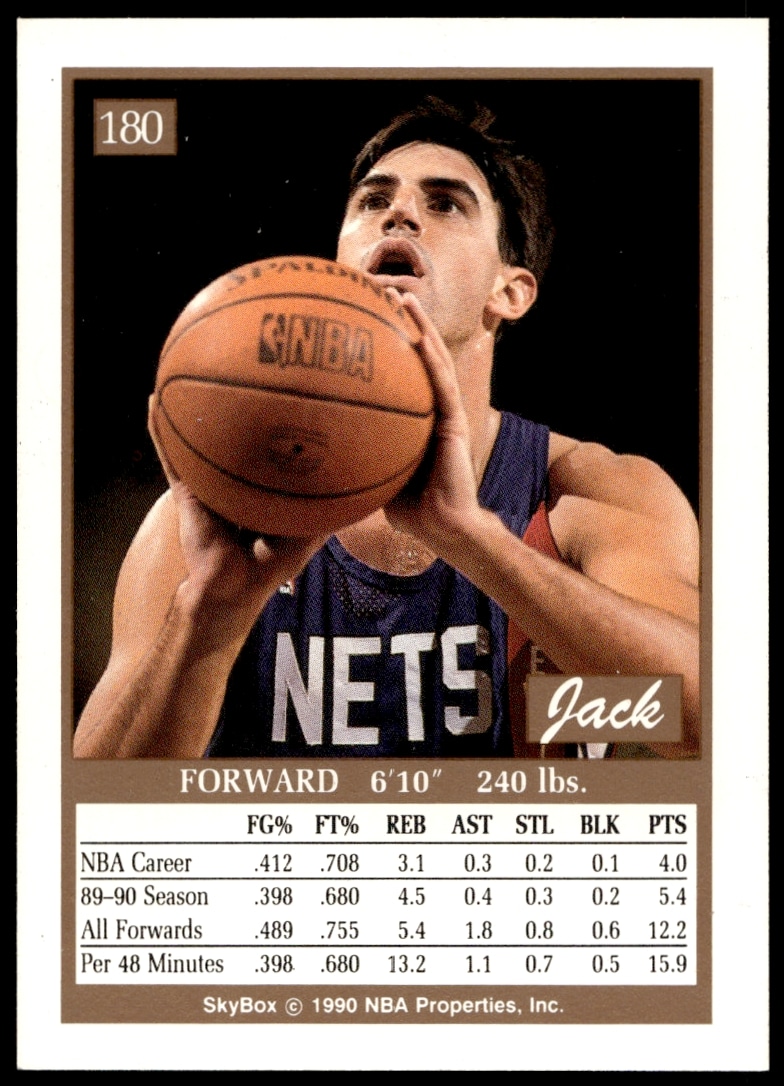 This Basketball card, from 1990-91 is part of the SkyBox card set. Jack Haley is featured and has a card number of 180.