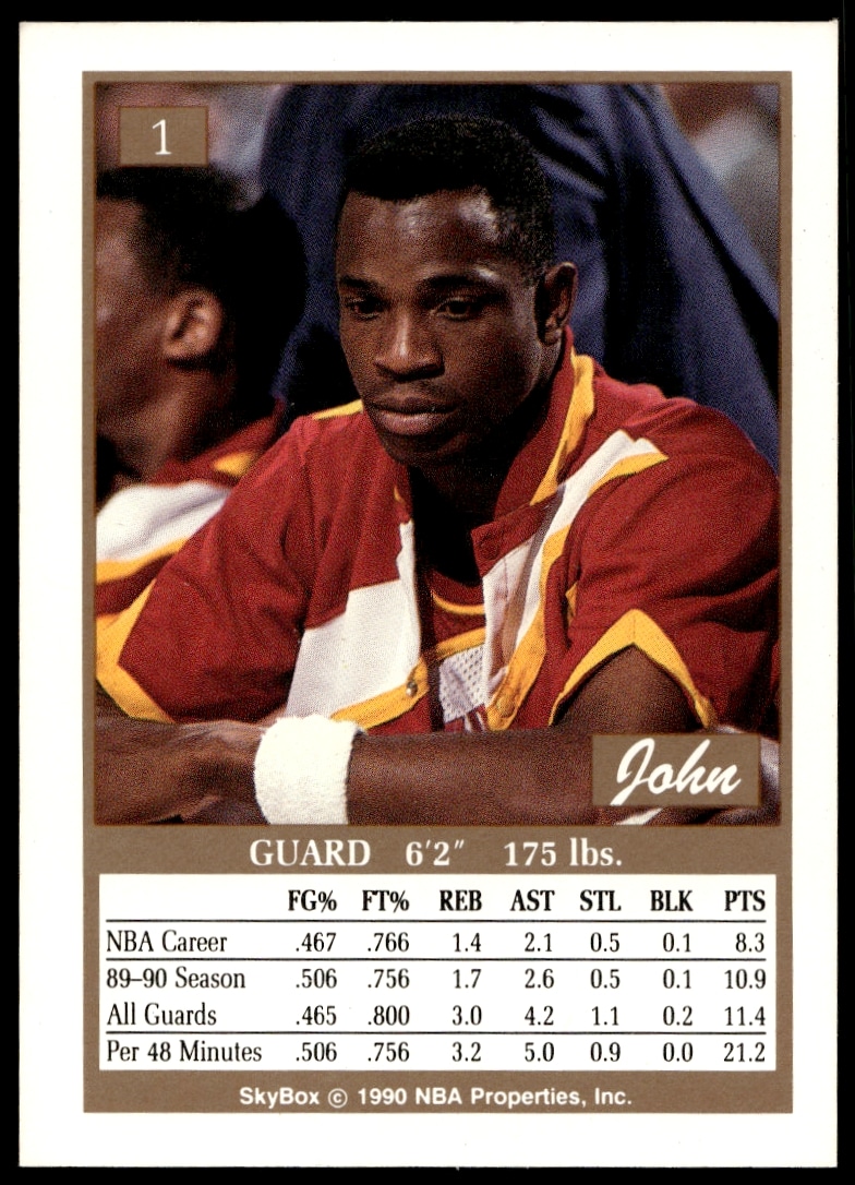 This Basketball card, from 1990-91 is part of the SkyBox card set. John Battle is featured and has a card number of 1.