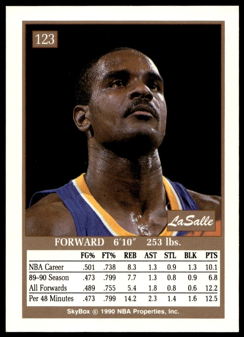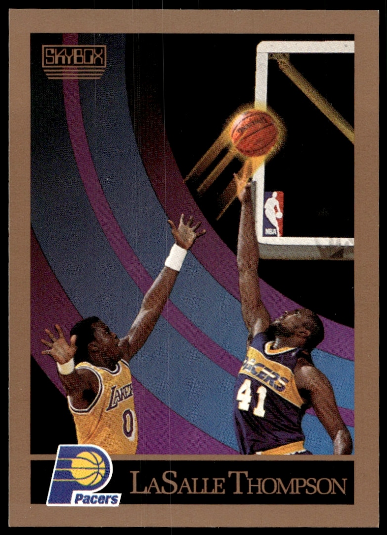This Basketball card, from 1990-91 is part of the SkyBox card set. LaSalle Thompson is featured and has a card number of 123.