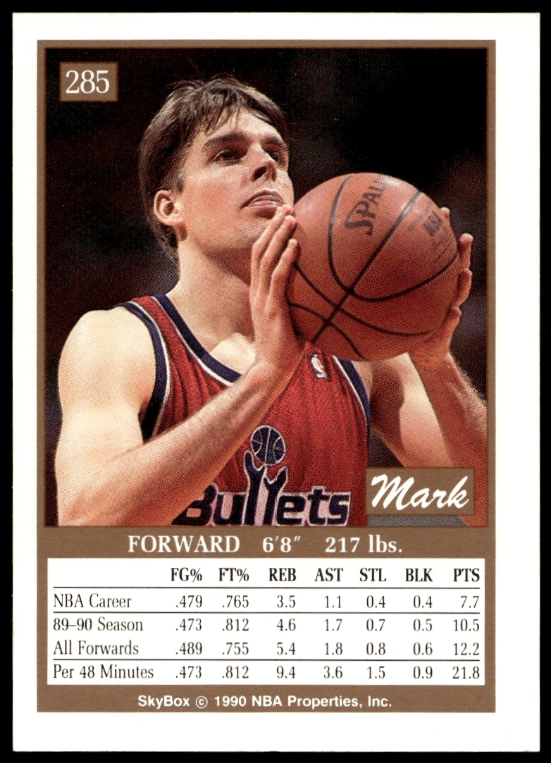 This Basketball card, from 1990-91 is part of the SkyBox card set. Mark Alarie is featured and has a card number of 285.