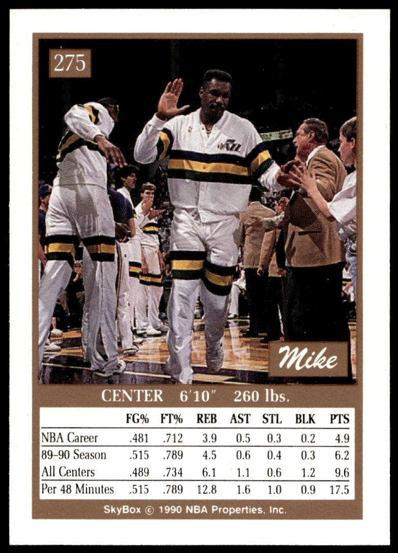 This Basketball card, from 1990-91 is part of the SkyBox card set. Mike Brown is featured and has a card number of 275.