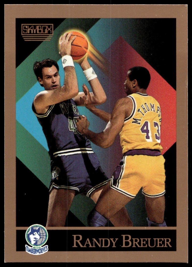 This Basketball card, from 1990-91 is part of the SkyBox card set. Randy Breuer is featured and has a card number of 167.