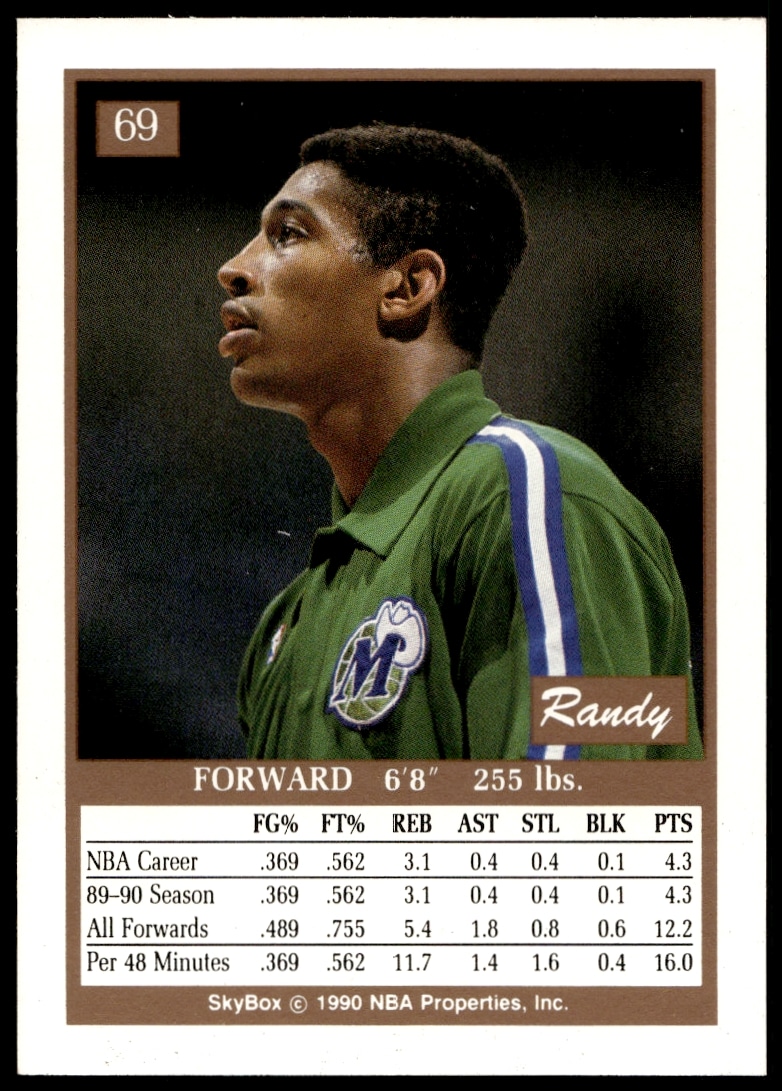 This Basketball card, from 1990-91 is part of the SkyBox card set. Randy White is featured and has a card number of 69.