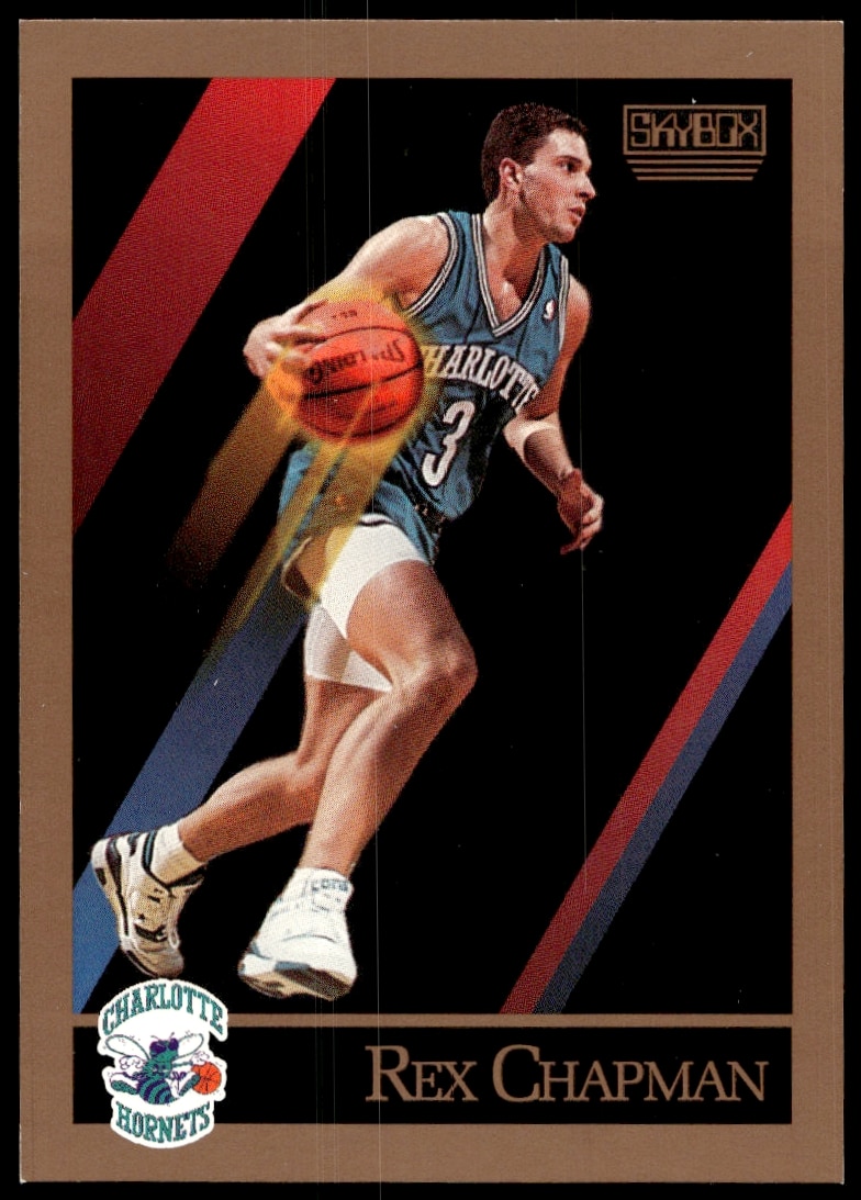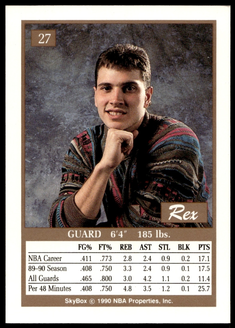 This Basketball card, from 1990-91 is part of the SkyBox card set. Rex Chapman is featured and has a card number of 27.