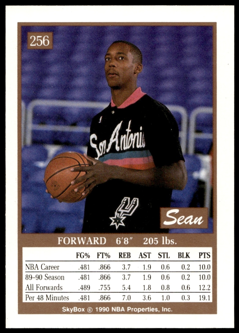 This Basketball card, from 1990-91 is part of the SkyBox card set. Sean Elliott is featured and has a card number of 256.