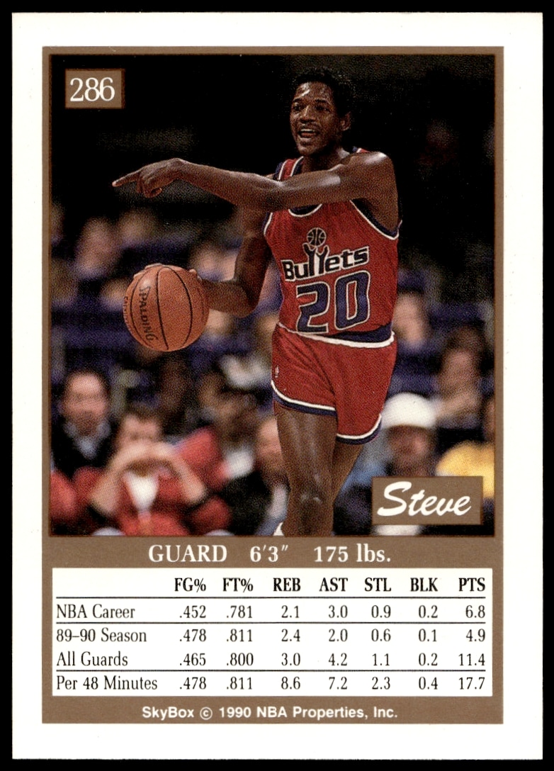 This Basketball card, from 1990-91 is part of the SkyBox card set. Steve Colter is featured and has a card number of 286.