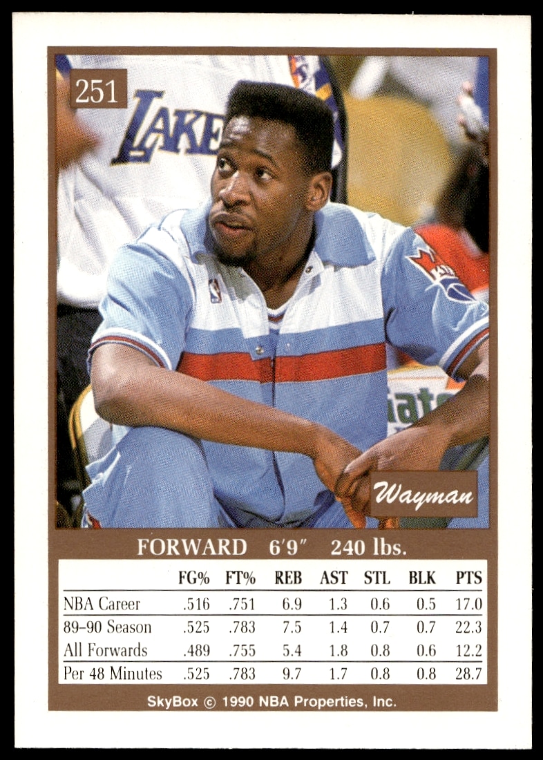 This Basketball card, from 1990-91 is part of the SkyBox card set. Wayman Tisdale is featured and has a card number of 251.