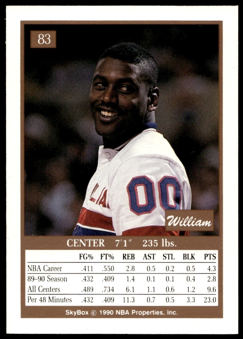 This Basketball card, from 1990-91 is part of the SkyBox card set. William Bedford is featured and has a card number of 83.