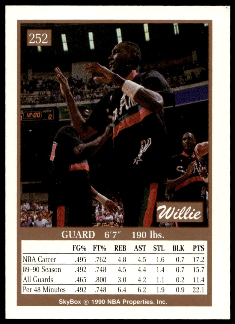 This Basketball card, from 1990-91 is part of the SkyBox card set. Willie Anderson is featured and has a card number of 252.