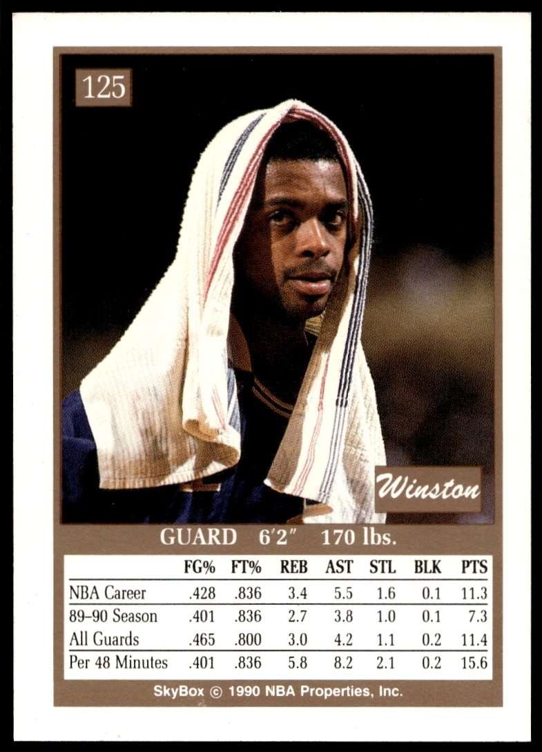 This Basketball card, from 1990-91 is part of the SkyBox card set. Winston Garland is featured and has a card number of 125.