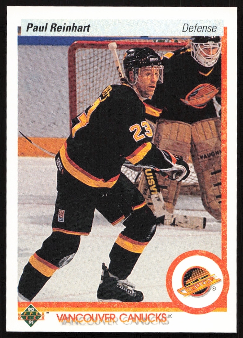 This Hockey card, from 1990-91 is part of the Upper Deck card set. Paul Reinhart is featured and has a card number of 110.