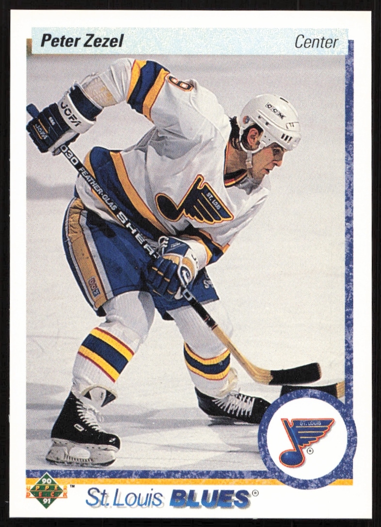 This Hockey card, from 1990-91 is part of the Upper Deck card set. Peter Zezel is featured and has a card number of 17.