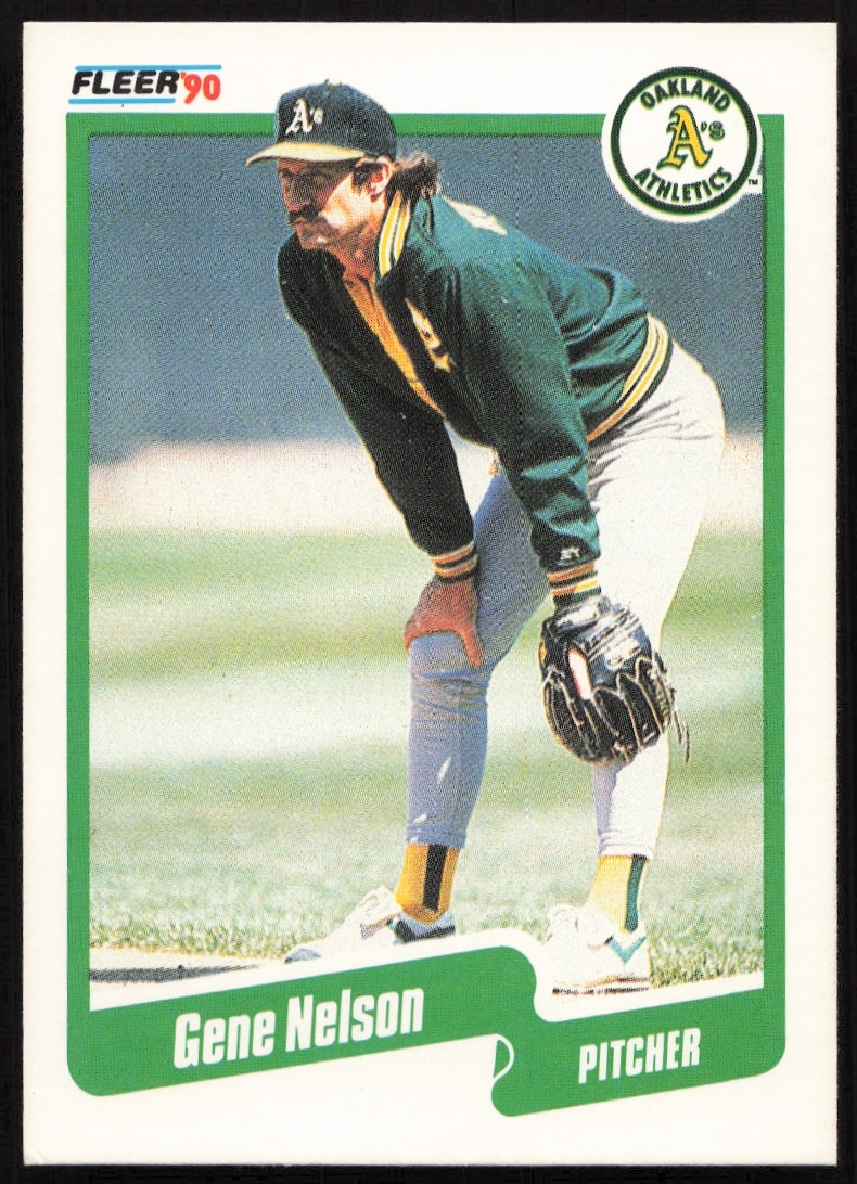 This Baseball card, from 1990 is part of the Fleer card set. Gene Nelson is featured and has a card number of 17.