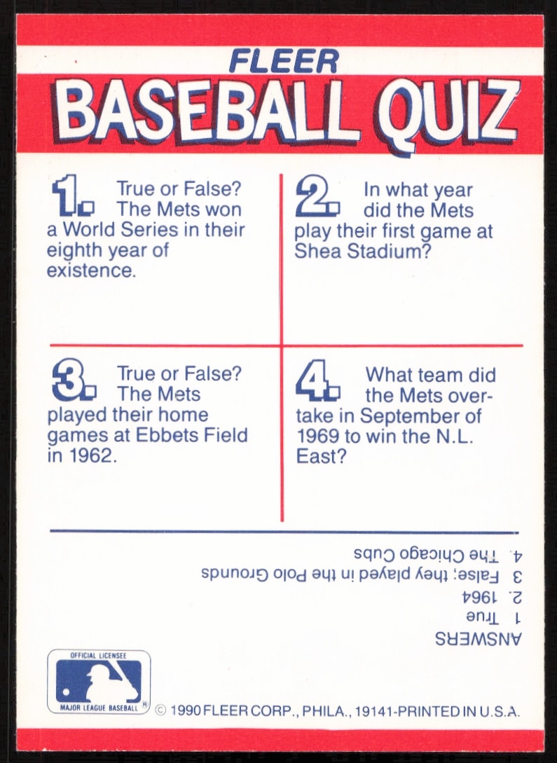 This Baseball card, from 1990 is part of the Fleer card set. New York Mets is featured and has a card number of .