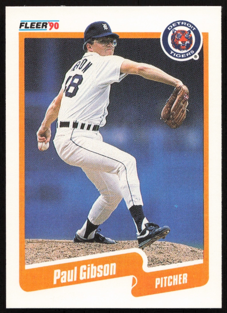 This Baseball card, from 1990 is part of the Fleer card set. Paul Gibson is featured and has a card number of 602.
