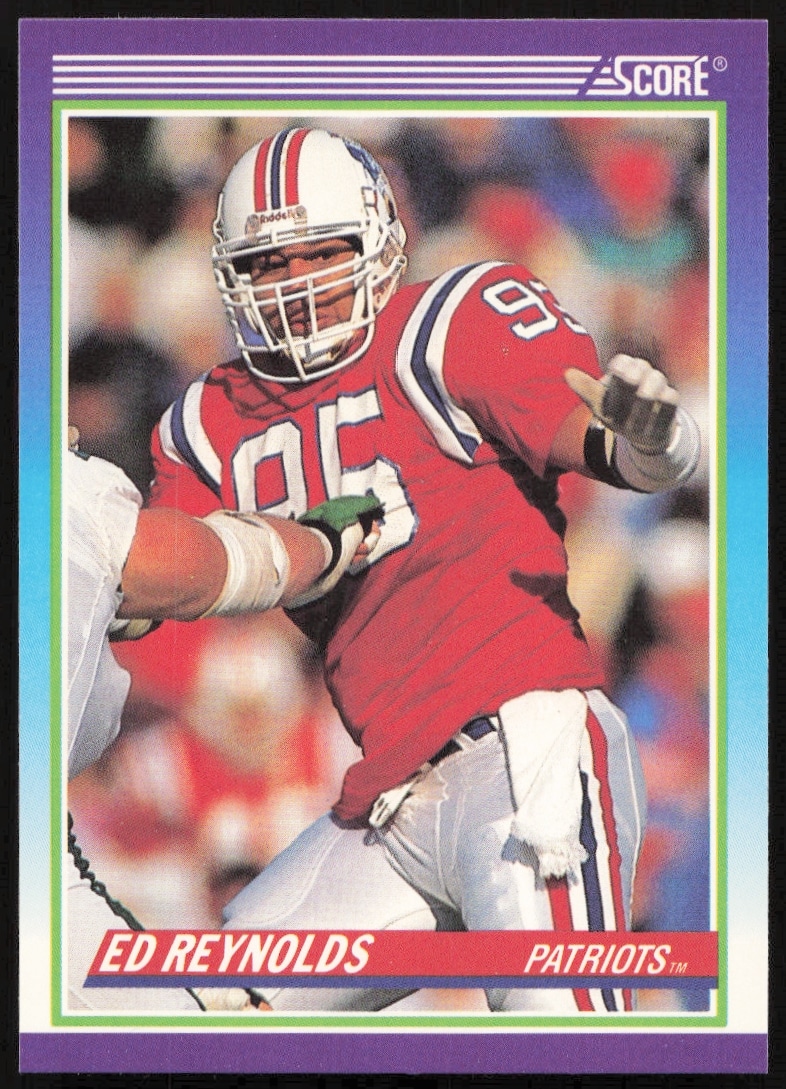 This Football card, from 1990 is part of the Score card set. Ed Reynolds is featured and has a card number of 528.