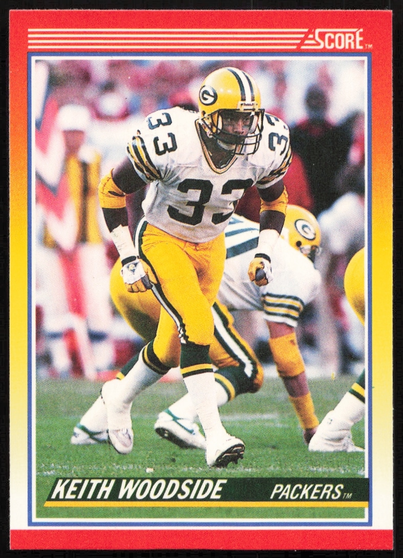 This Football card, from 1990 is part of the Score card set. Keith Woodside is featured and has a card number of 257.