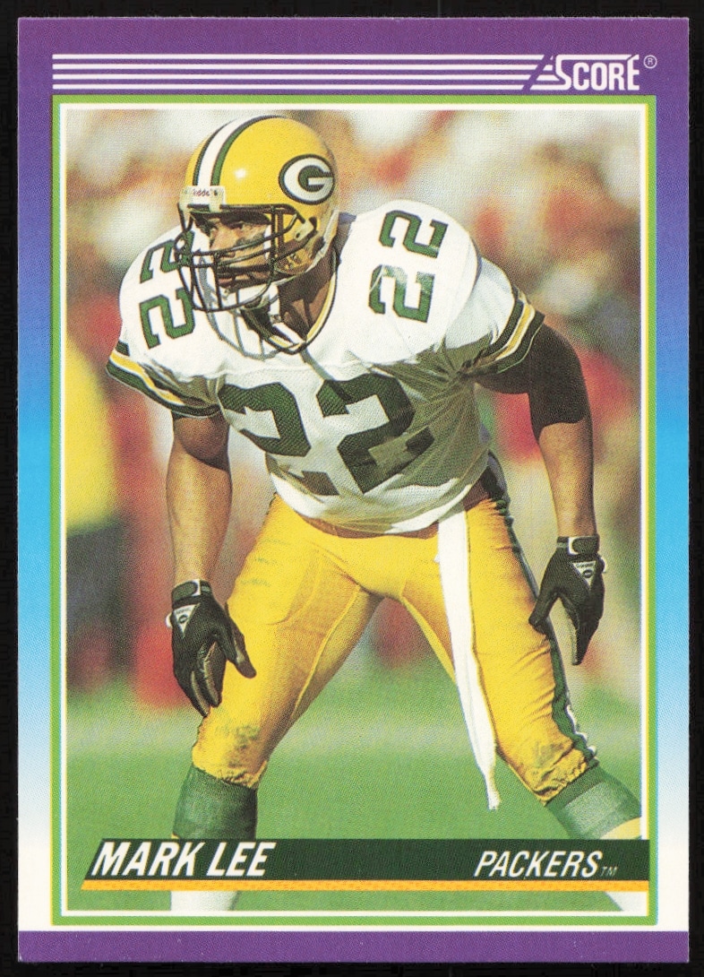 This Football card, from 1990 is part of the Score card set. Mark Lee is featured and has a card number of 491.