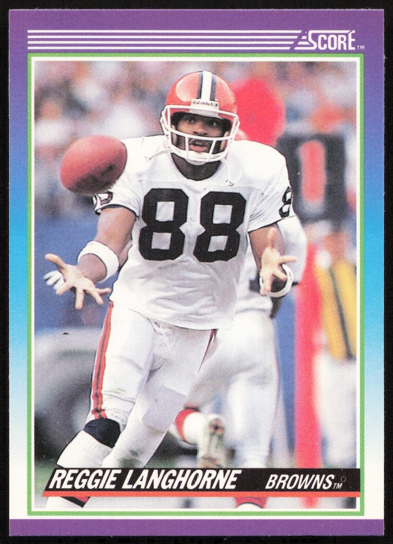This Football card, from 1990 is part of the Score card set. Reggie Langhorne is featured and has a card number of 186.