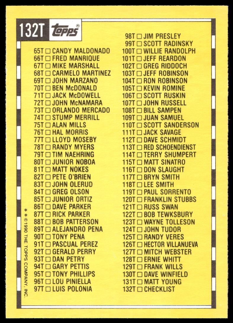This BaseballΒ card, from 1990 is part of the Topps TradedΒ card set. Checklist: 1T-132T is featured and has a card number of 132T.