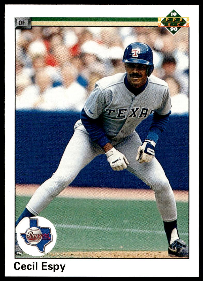 This Baseball card, from 1990 is part of the Upper Deck  card set. Cecil Espy is featured and has a card number of 371.