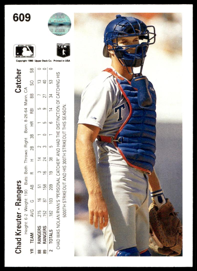 This Baseball card, from 1990 is part of the Upper Deck  card set. Chad Kreuter is featured and has a card number of 609.