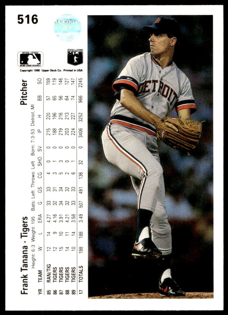 This Baseball card, from 1990 is part of the Upper Deck  card set. Frank Tanana is featured and has a card number of 516.