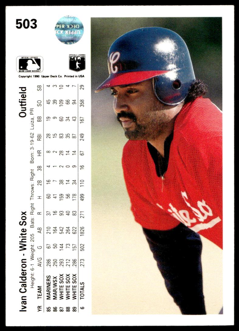 This BaseballΒ card, from 1990 is part of the Upper Deck Β card set. Ivan Calderon is featured and has a card number of 503.