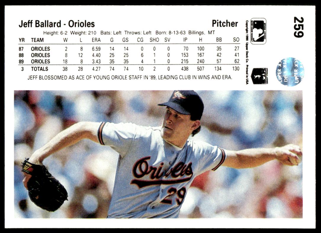 This Baseball card, from 1990 is part of the Upper Deck  card set. Jeff Ballard is featured and has a card number of 259.