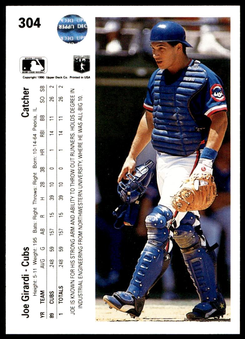 This Baseball card, from 1990 is part of the Upper Deck  card set. Joe Girardi is featured and has a card number of 304.
