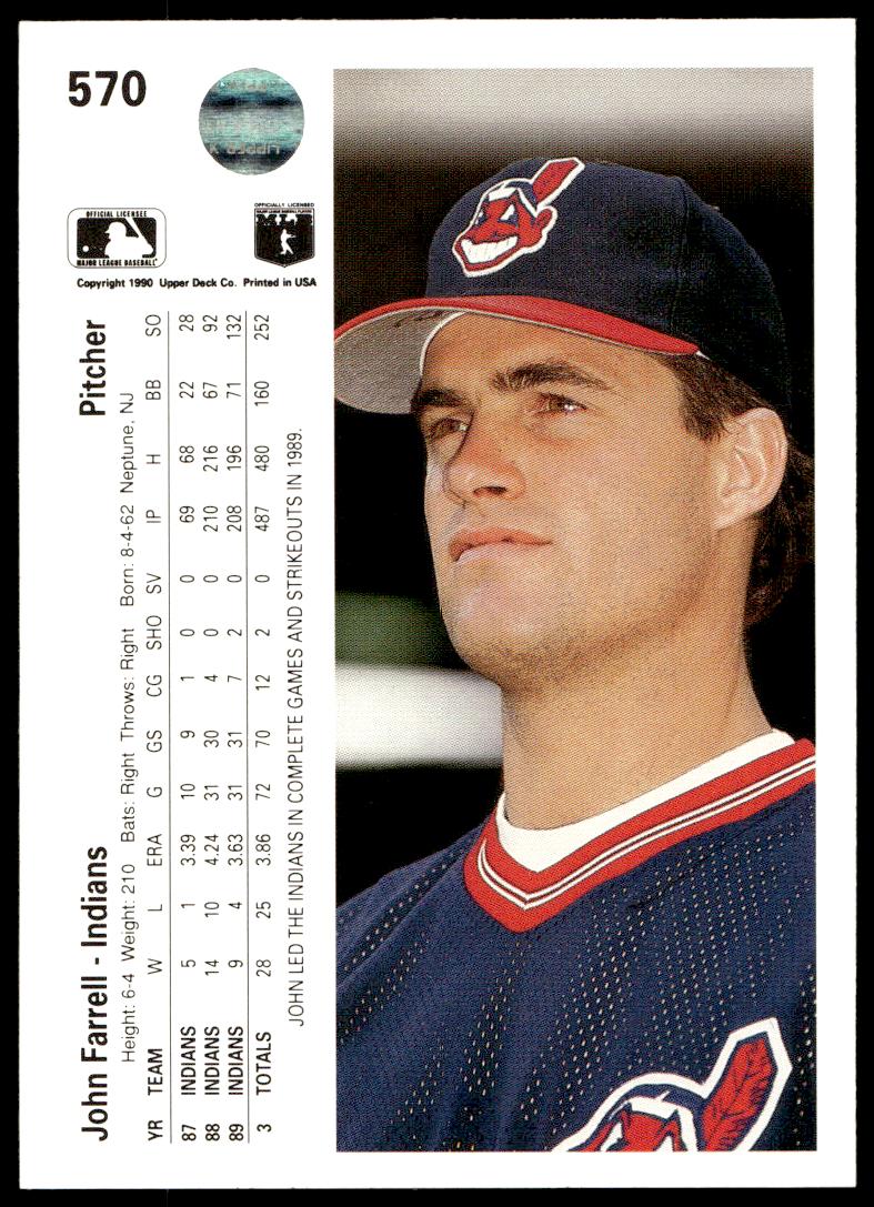This Baseball card, from 1990 is part of the Upper Deck  card set. John Farrell is featured and has a card number of 570.