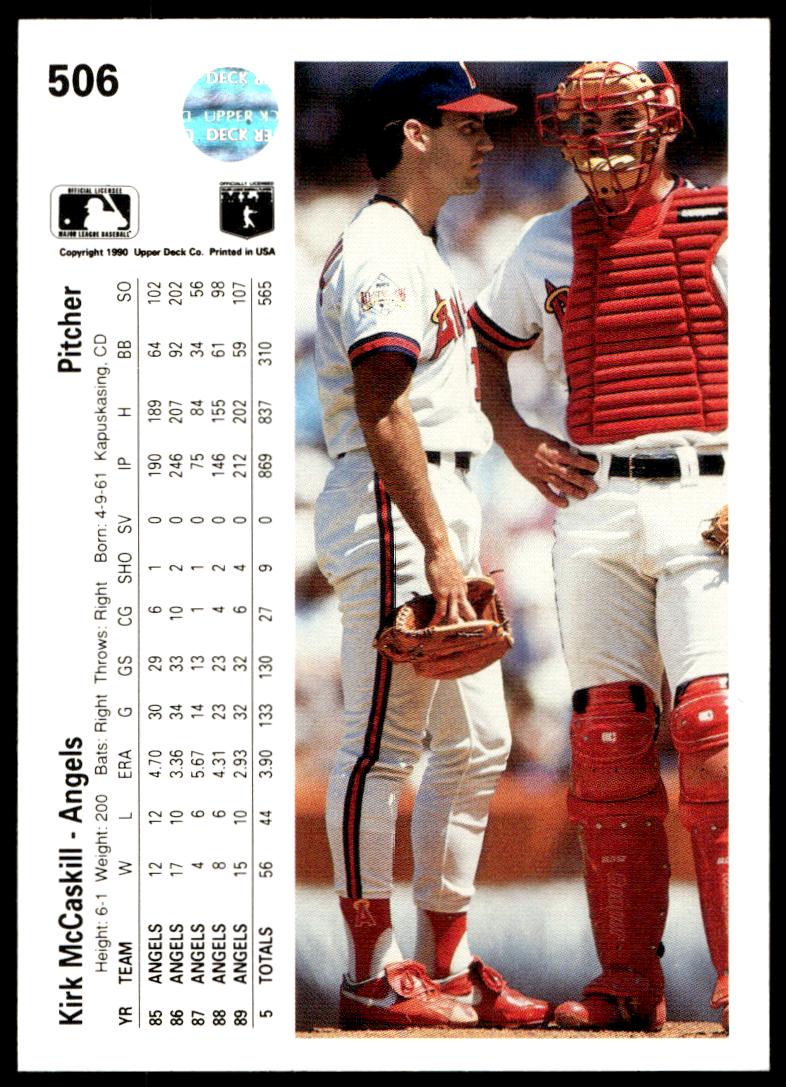 This BaseballΒ card, from 1990 is part of the Upper Deck Β card set. Kirk McCaskill is featured and has a card number of 506.