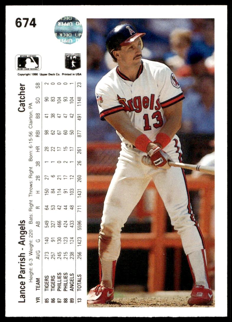 This BaseballΒ card, from 1990 is part of the Upper Deck Β card set. Lance Parrish is featured and has a card number of 674.