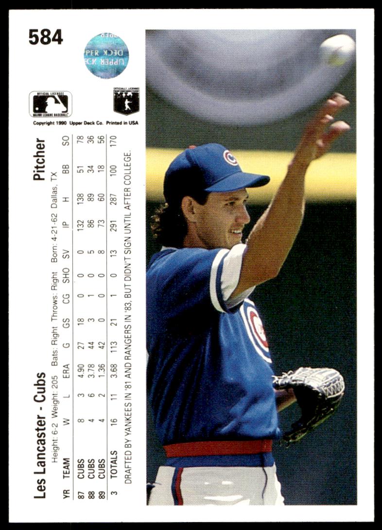 This BaseballΒ card, from 1990 is part of the Upper Deck Β card set. Les Lancaster is featured and has a card number of 584.