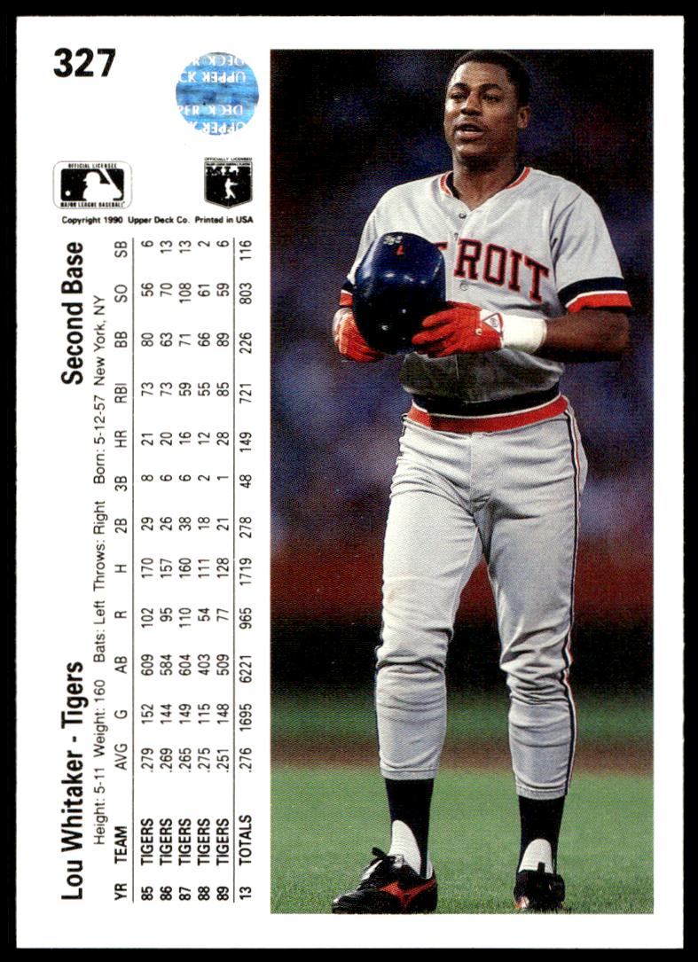This Baseball card, from 1990 is part of the Upper Deck  card set. Lou Whitaker is featured and has a card number of 327.