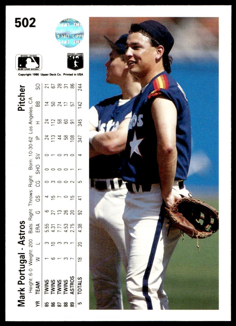 This BaseballΒ card, from 1990 is part of the Upper Deck Β card set. Mark Portugal is featured and has a card number of 502.