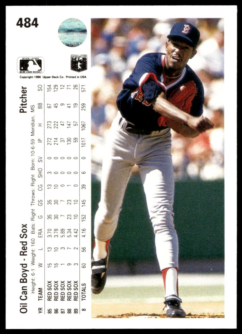 This Baseball card, from 1990 is part of the Upper Deck  card set. Oil Can Boyd is featured and has a card number of 484.
