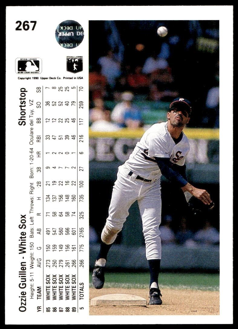 This BaseballΒ card, from 1990 is part of the Upper Deck Β card set. Ozzie Guillen is featured and has a card number of 267.