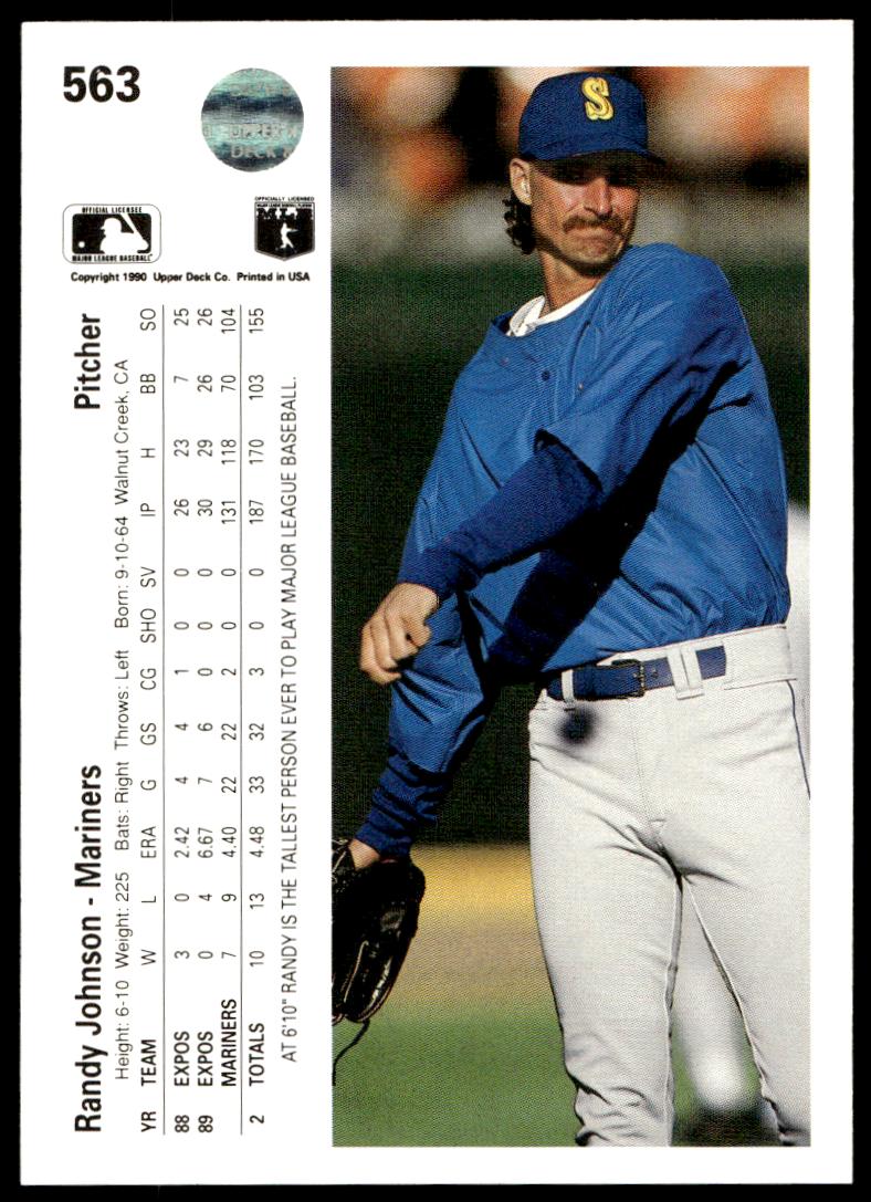 This BaseballΒ card, from 1990 is part of the Upper Deck Β card set. Randy Johnson is featured and has a card number of 563.