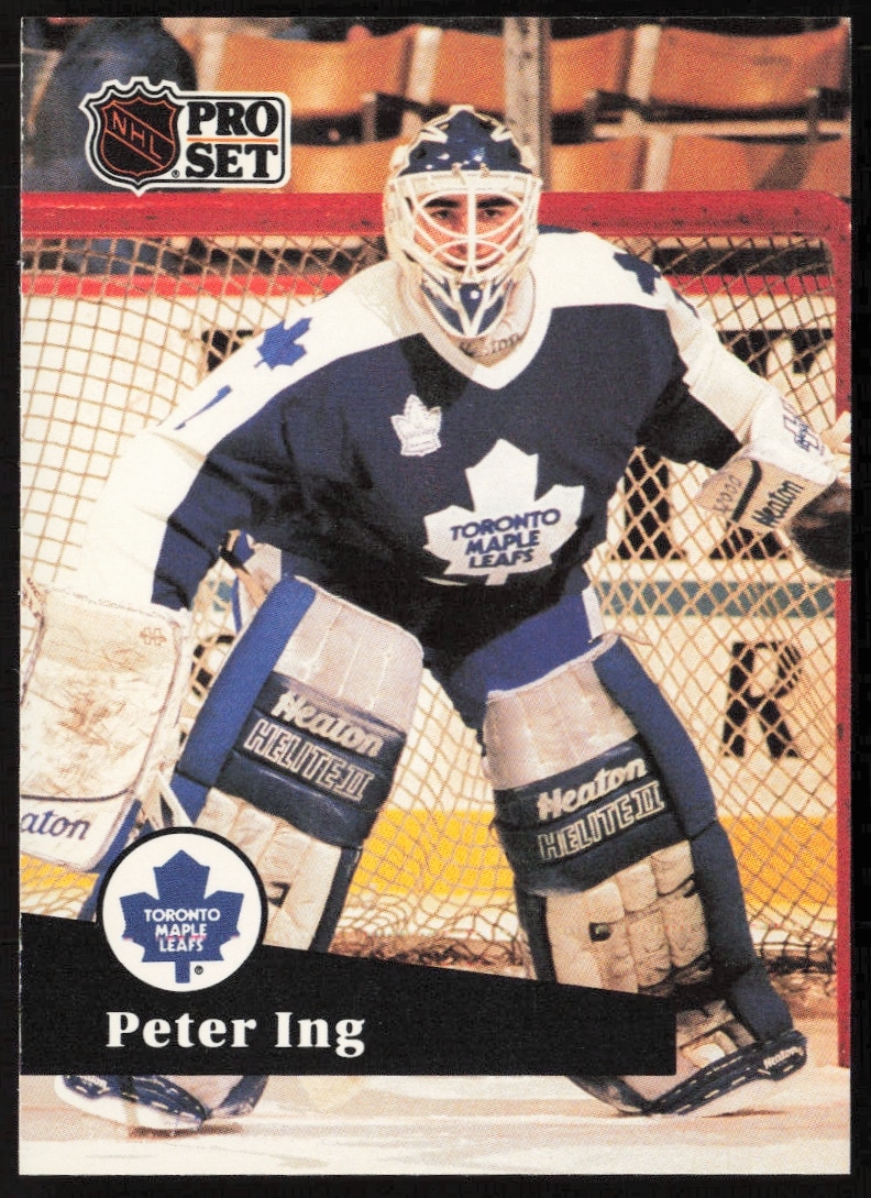 This Hockey card, from 1991-92 is part of the Pro Set NHL card set. Peter Ing is featured and has a card number of 222.