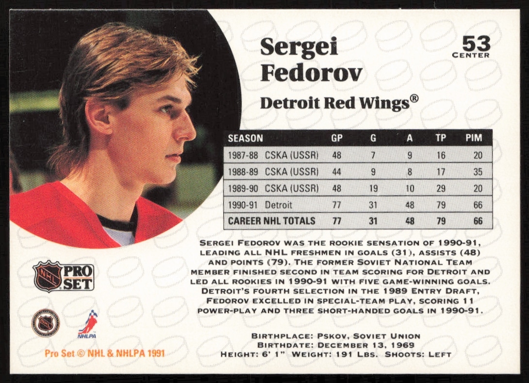 1991-92 Pro Set NHL Sergei Fedorov #53