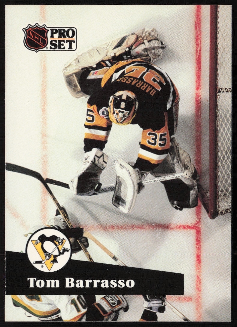 This Hockey card, from 1991-92 is part of the Pro Set NHL card set. Tom Barrasso is featured and has a card number of 186.