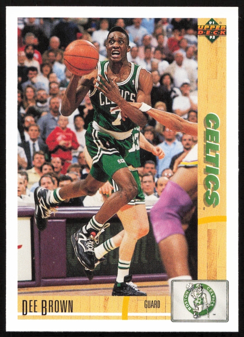 This Basketball card, from 1991-92 is part of the Upper Deck card set. Dee Brown is featured and has a card number of 143.