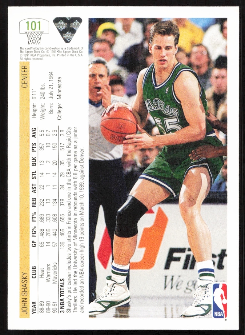 This Basketball card, from 1991-92 is part of the Upper Deck card set. John Shasky is featured and has a card number of 101.
