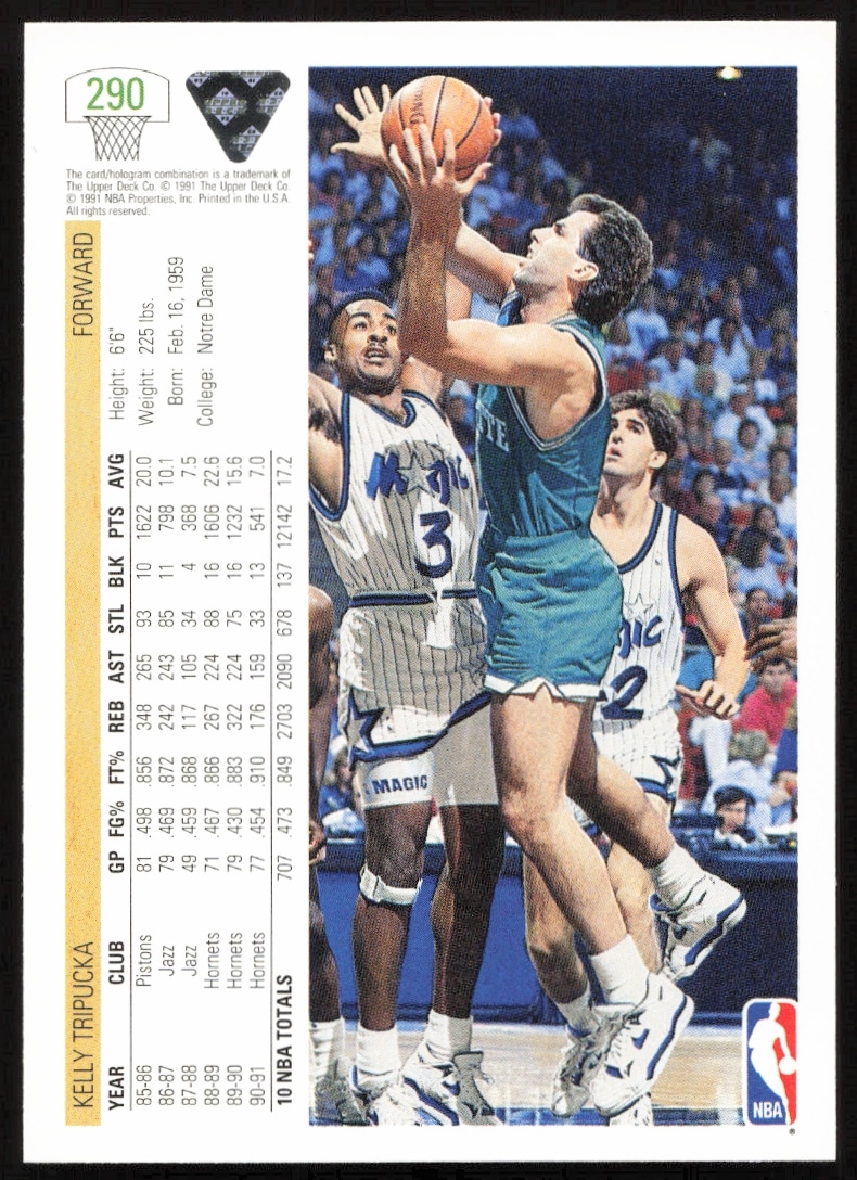 This Basketball card, from 1991-92 is part of the Upper Deck card set. Kelly Tripucka is featured and has a card number of 290.