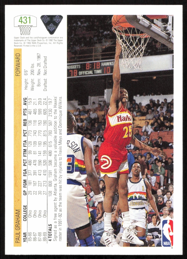 This Basketball card, from 1991-92 is part of the Upper Deck card set. Paul Graham is featured and has a card number of 431.