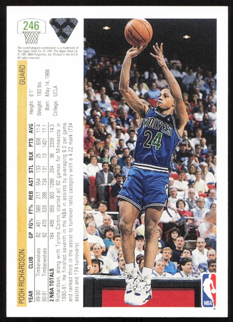 This Basketball card, from 1991-92 is part of the Upper Deck card set. Pooh Richardson is featured and has a card number of 246.